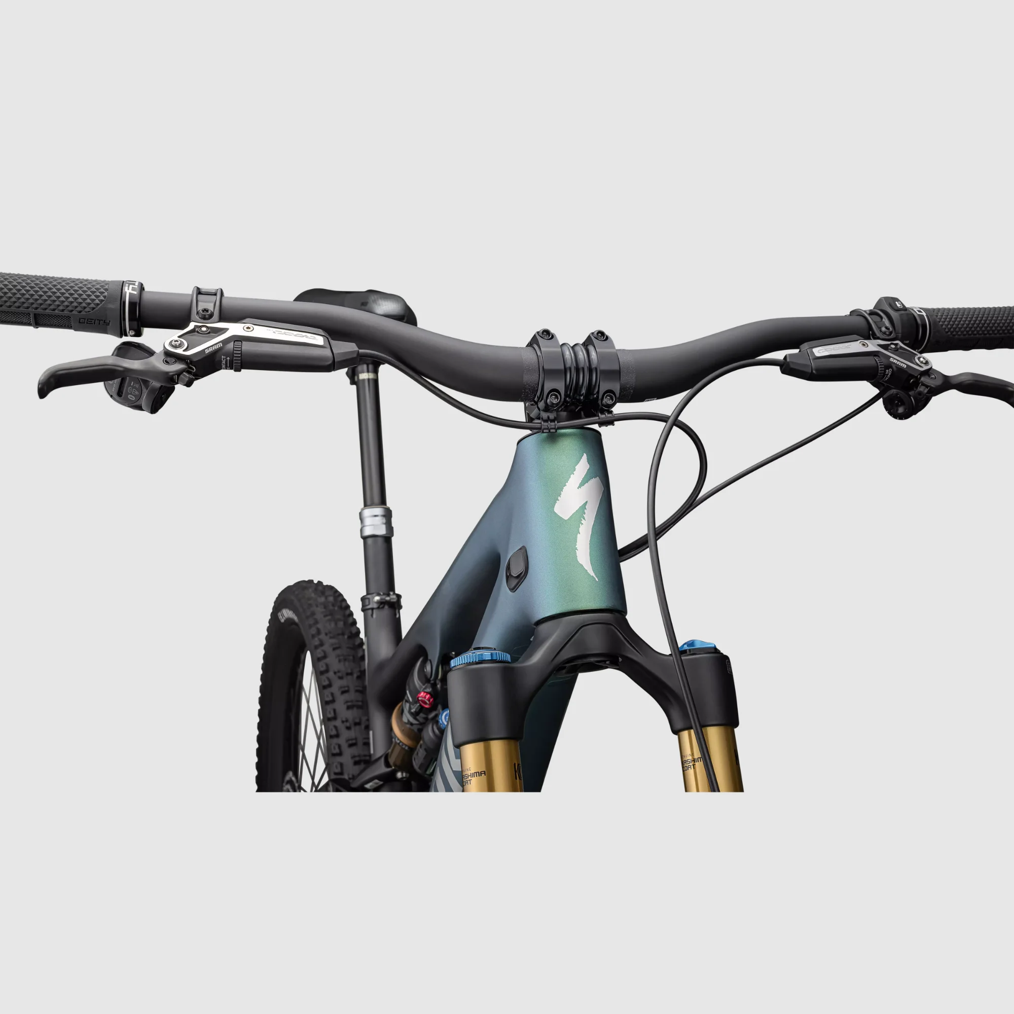 A KONTROLL GEOMETRIÁJA — A kokpit a bringa közepére helyez, optimalizálva a tapadást és a kanyar-kontrollt. Az alacsony középrész, a laza fejcsőszög és a csökkentett villa offset stabilan tart a durva részeken, miközben szabadságot ad, hogy szétverd a kanyarokat. A fejcsőszög személyre szabható 63, 64.25 és 65.5 fokra.