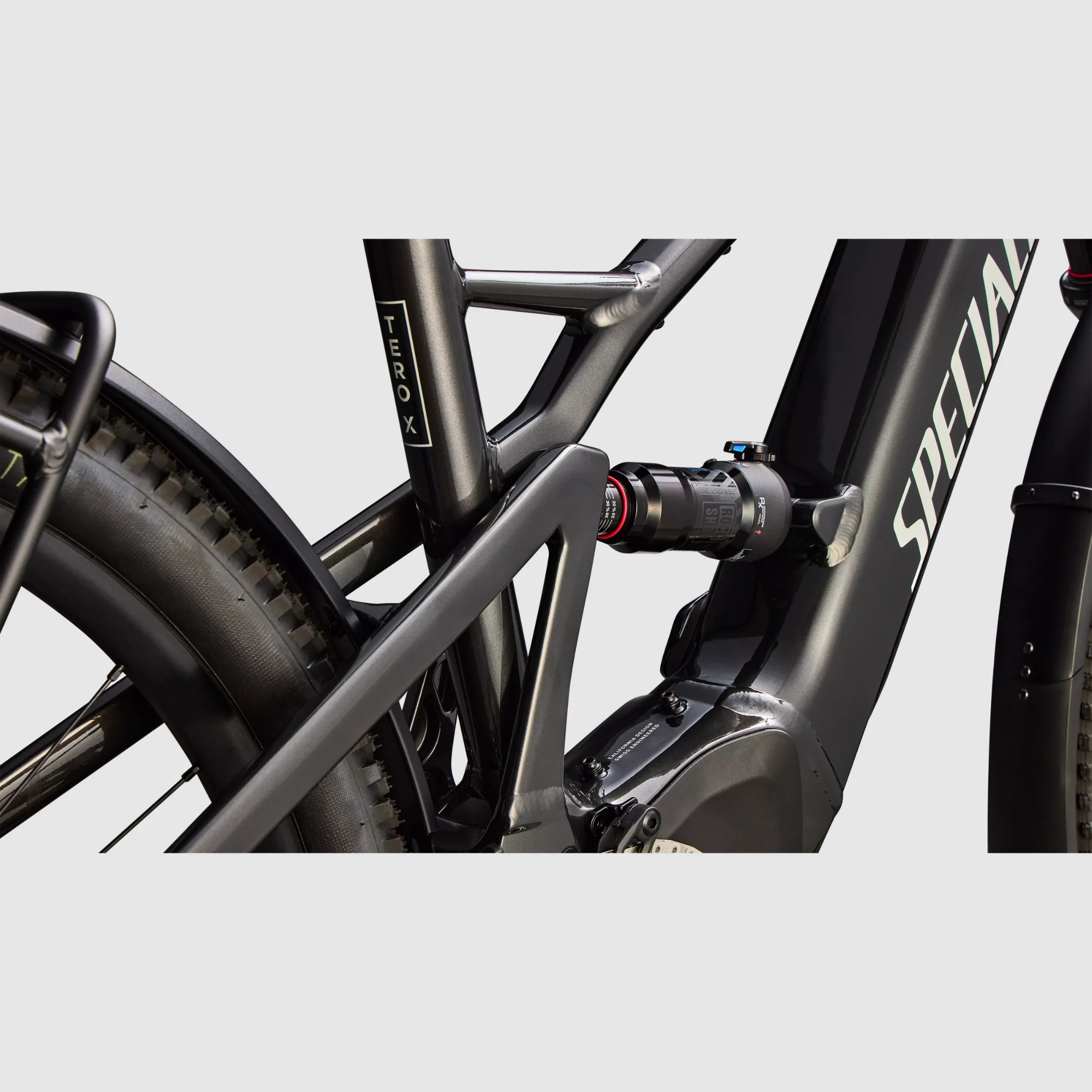 Váz: E5 alumínium, teljes felfüggesztés, mullet kialakítás (M–XL), integrált és zárható akkumulátor, belső kábelezés, első csomagtartó rögzítési pont