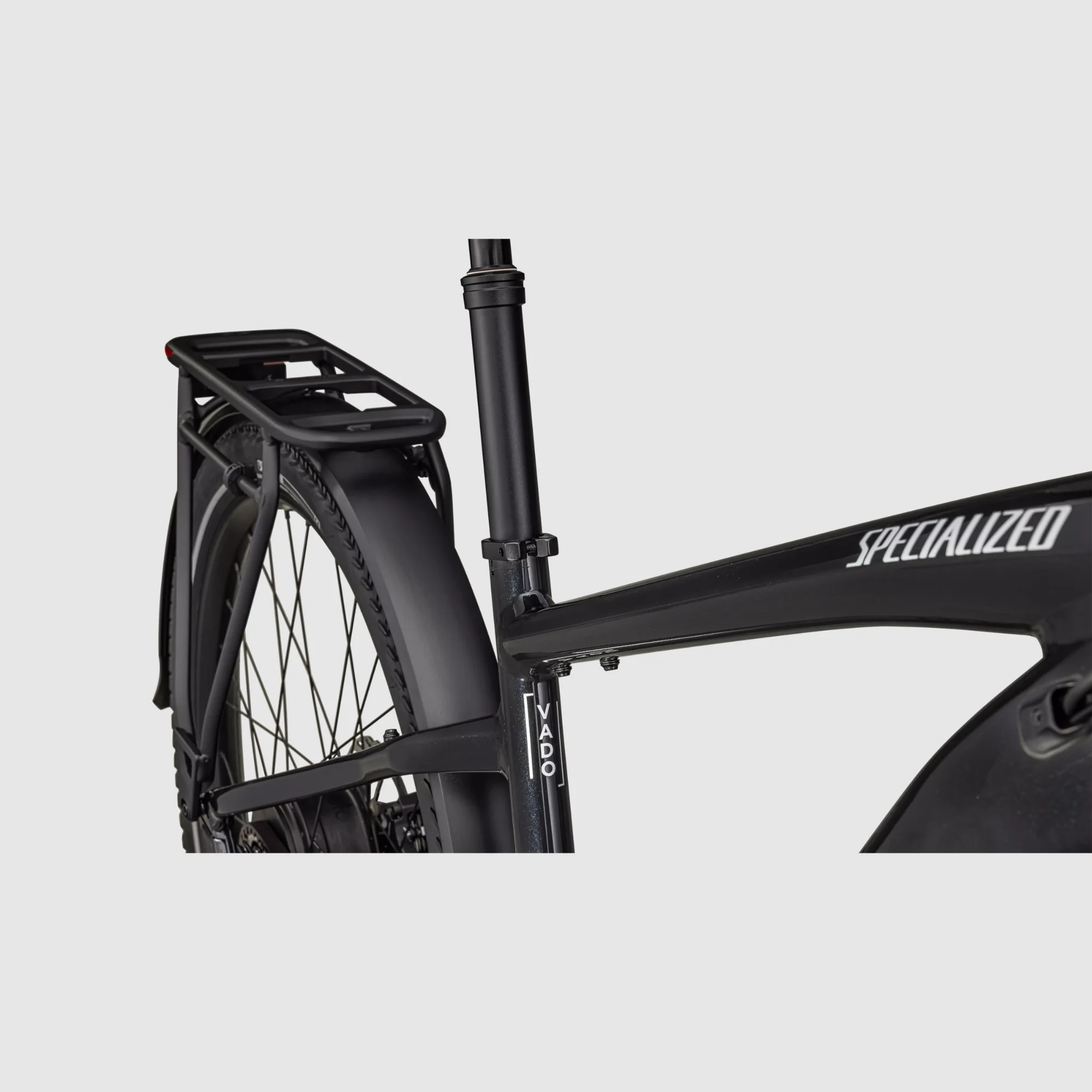 DRYTECH sárvédőkkel, elöl és hátul LED lámpákkal, valamint 27 kg teherbírású hátsó HD csomagtartóval felszerelve. A hátsó csomagtartó kompatibilis gyerekülésekkel és alkalmas átütőtengelyes utánfutó húzására.